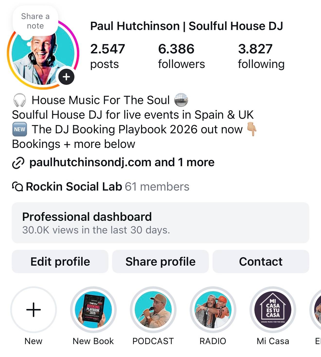 Example: Paul Hutchinson | Soulful House DJ or Rockin Social Media I Social Media Management
